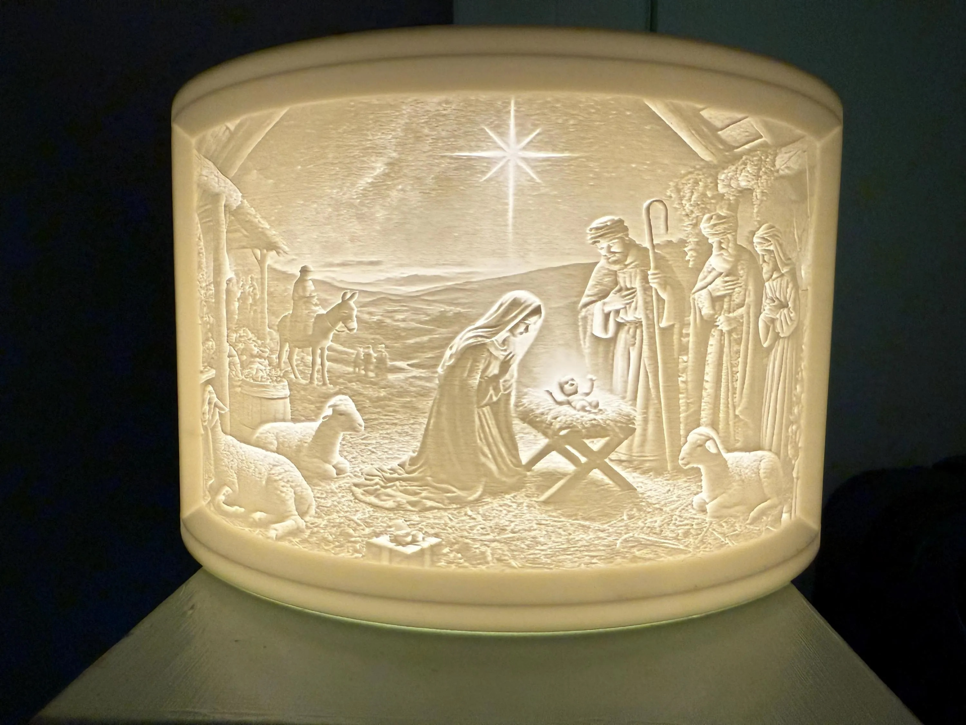 A lithophane is a thin, translucent plaque that displays an image when lit from behind, with different thicknesses representing different shades.